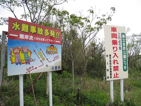 写真4.吹上浜、車両乗り入れ禁止の立て札には吹上町長と書かれてあり、