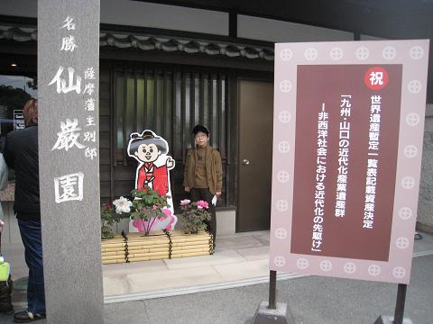 写真1.仙巌園の入り口で篤姫の人形と撮影。