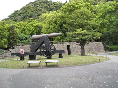 写真2.緑の木々の中に、旧島津家の大砲が溶け込んでいた。
