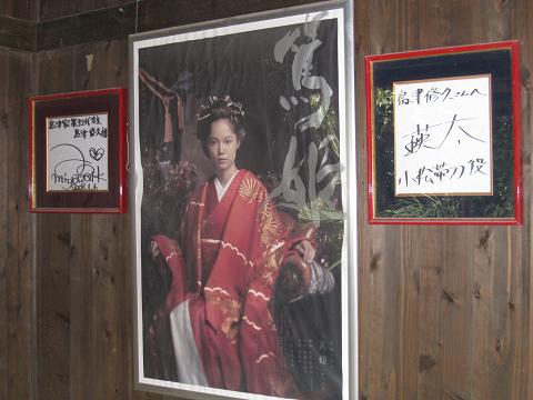 写真3.昨年(2009年)のNHK大河ドラマの篤姫のロケ地になったことから、圧姫のポスターが貼られていた。今年の大河ドラマは「龍馬伝」、でつながっていることに気付いた。