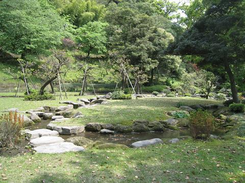 写真4.細長いきれいな川がゆっくり流れていて、ここで曲水の宴が行われたとのこと。風流なもよおしですね。